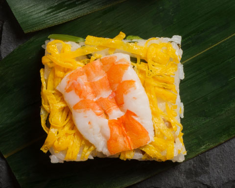 ほどよく酢で締めた新鮮な素材を、香り高い青笹に包んだ古都の味『笹の葉寿司』。